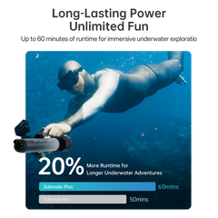 More thrust. More speed. More runtime. The Subnado Plus is the next-gen underwater scooter built for snorkellers, divers, and water-toy lovers who want serious performance without the bulk. At just 1.8 kg with an airline-compliant 98 Wh battery, it’s easy to travel with—yet it delivers smooth, responsive punch when you need it. Use it handheld for instant fun or mount it to your gear (accessories sold separately) for hands-free cruising.
